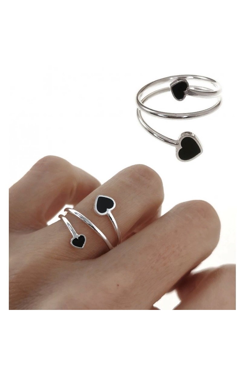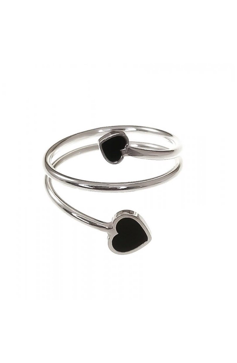 Anillo abierto realizado en Plata de ley 925 con corazones y esmalte negro.