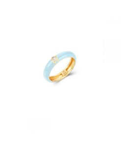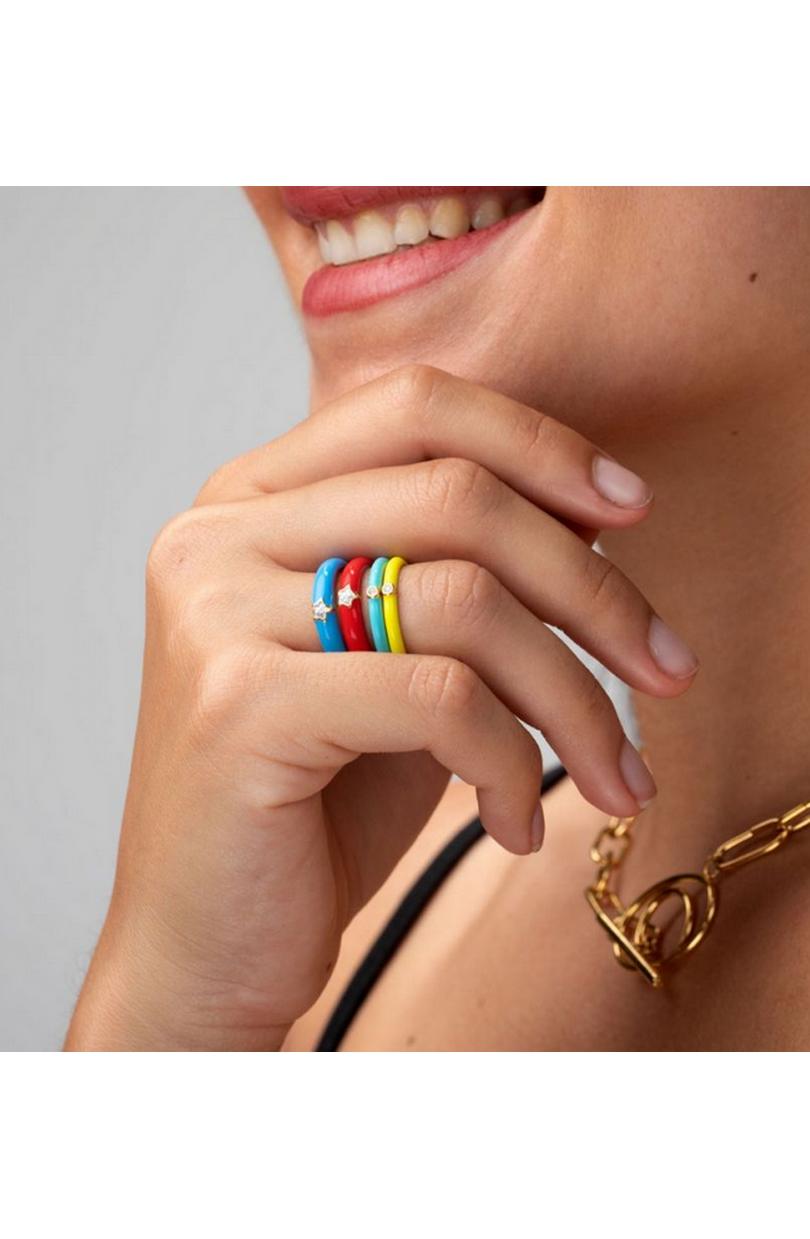 Anillo Enamel realizado en Plata 925 bañada en oro con circonita blanca en forma de estrella.