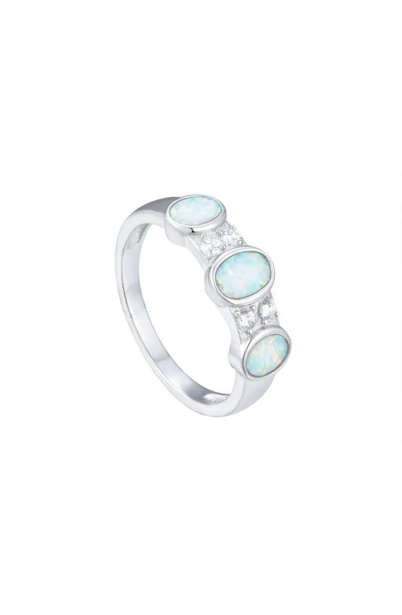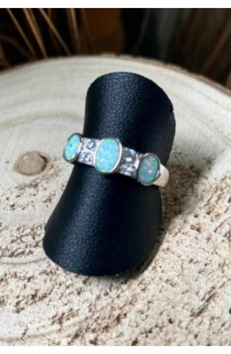 Anillo realizado en Plata 925 con circonitas y ovalos de opalo en piedra natural.