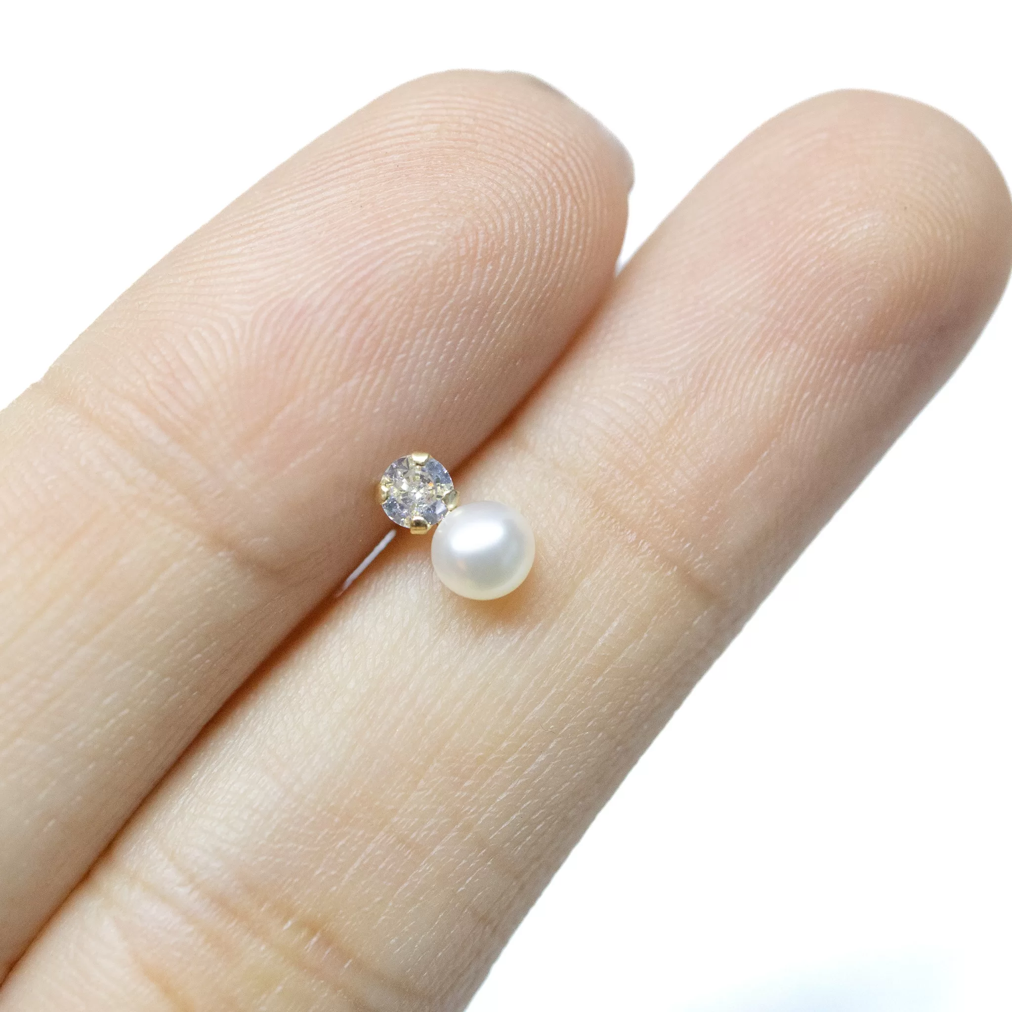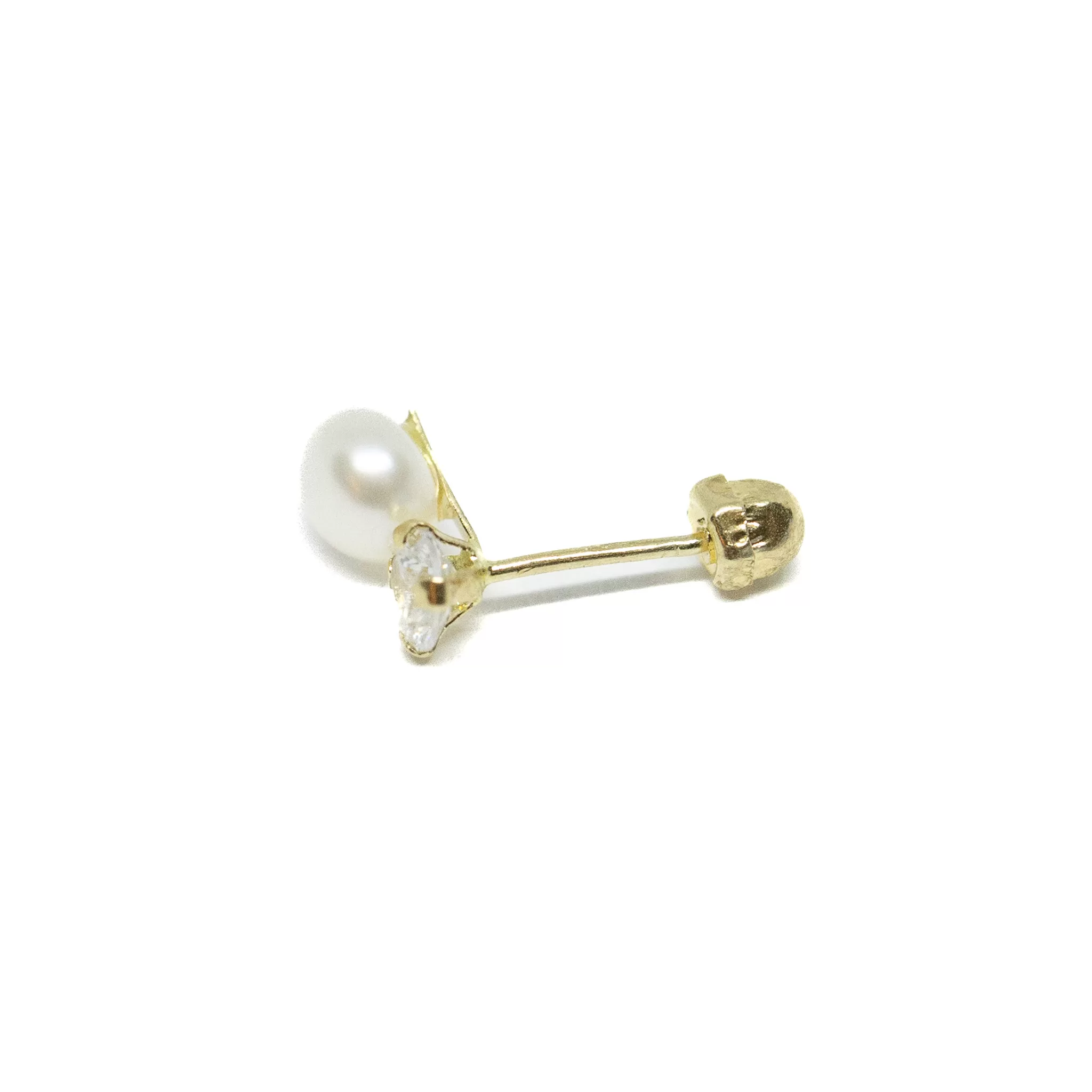 Descubre nuestro encantador diseño de arete con una perla y zirconia. Un arete de elegancia inigualable, perfecto para realzar tu estilo chic. Ideal para tus perforaciones, este arete ofrece un toque de belleza excepcional.