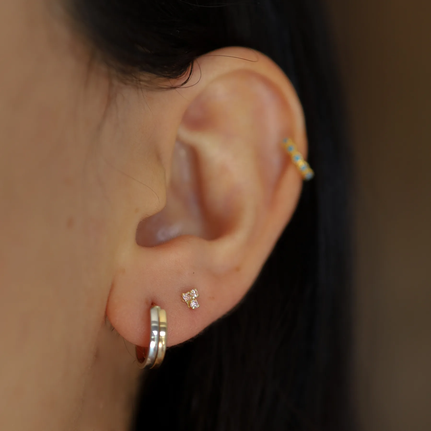 Realza tu estilo con este delicado arete decorado con tres zirconias rosas. Su diseño versátil te permite usarlo solo para un look refinado o combinarlo con otros pendientes para un estilo más creativo. Aporta un toque de color suave y elegante a tu colección de joyas. ¡Un accesorio que destacará en cualquier ocasión!