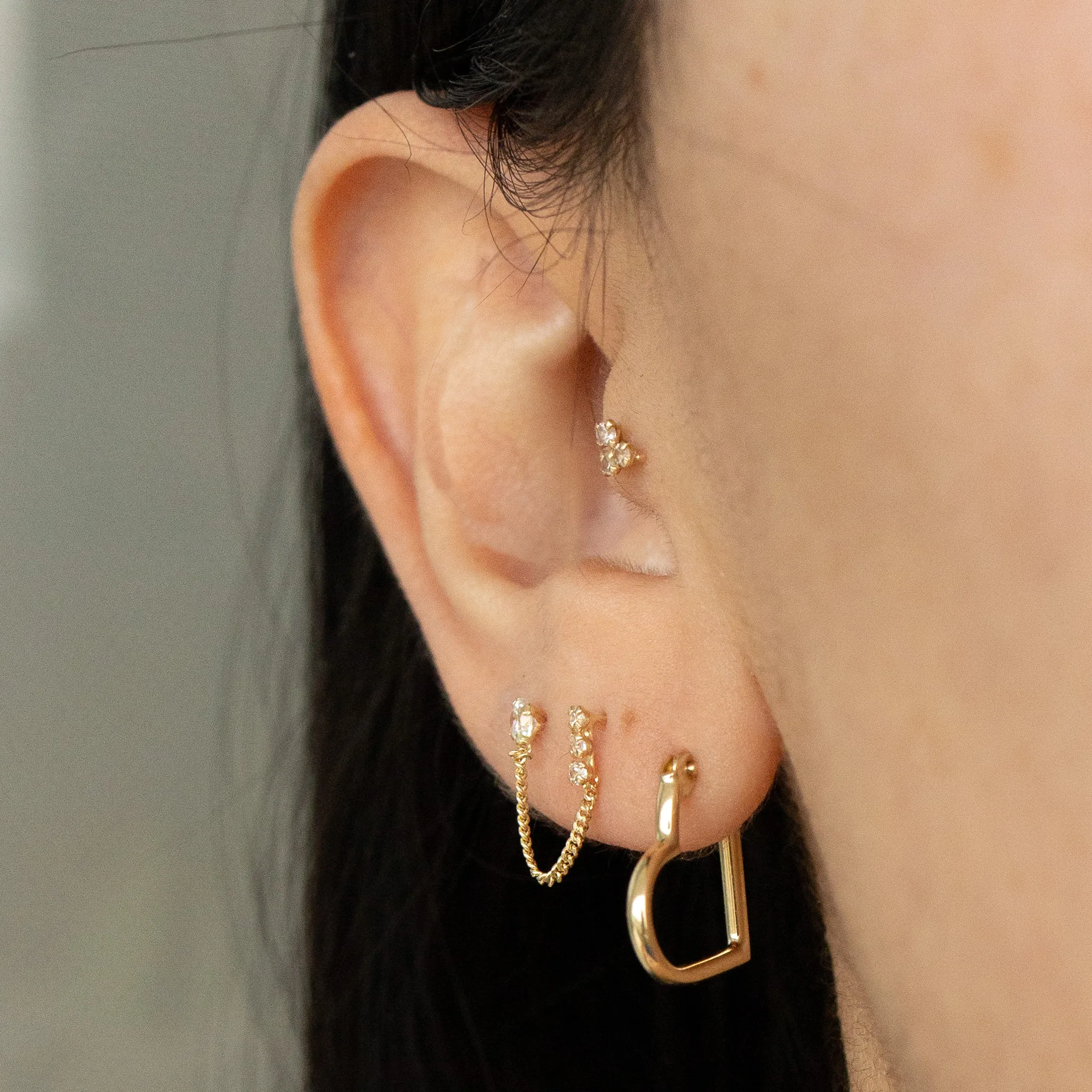 ¿Qué es mejor que un arete? ¡Dos! Con este accesorio de cadena estrenarás dos veces y te verás espectacular. No hay nada mejor que añadir brillo a tus orejas y este diseño es perfecto para eso.