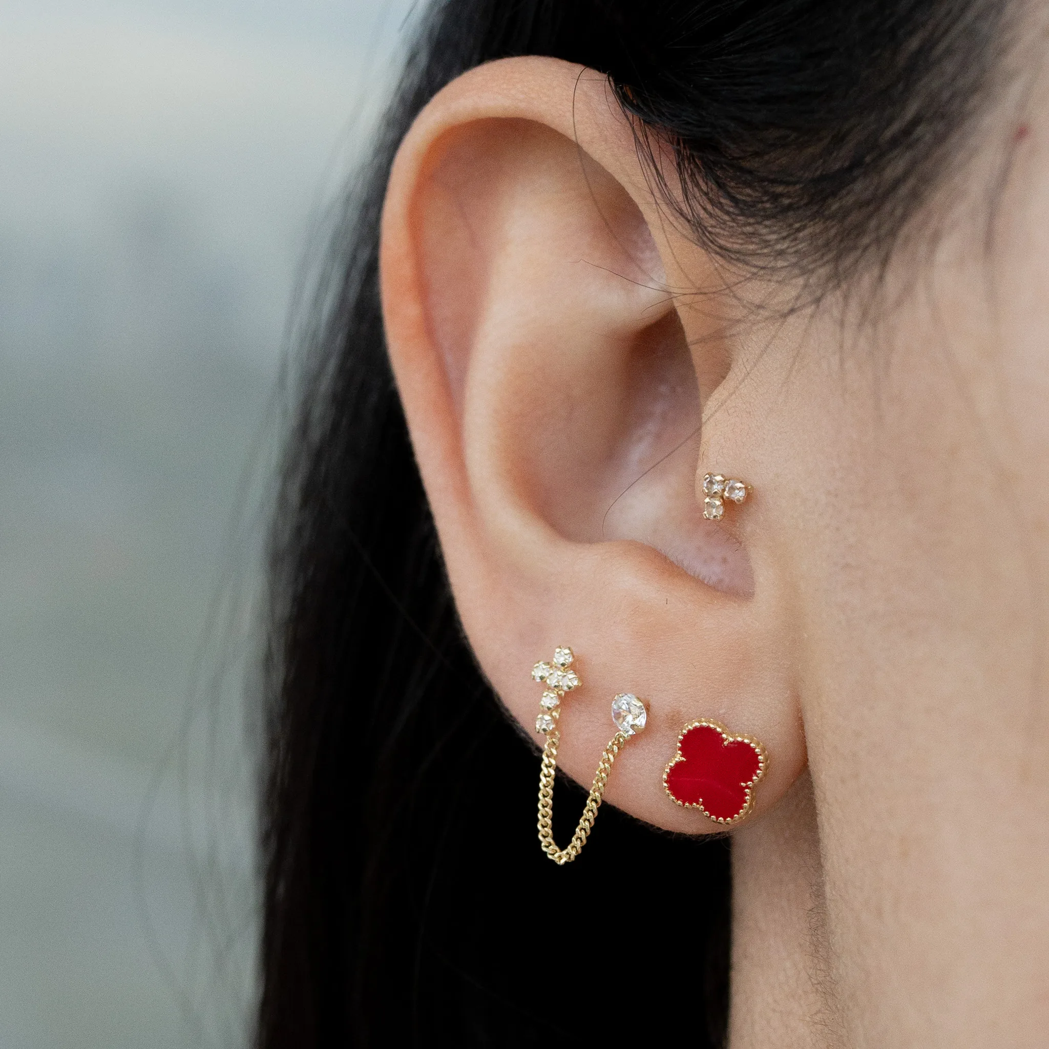 Complementa de forma elegante todos tus looks con este arete 2 en 1. Este accesorio con cadenita te hará resaltar tu belleza a donde quiera que vayas. ¡Añade ese toque especial a tu outfit todos los días!