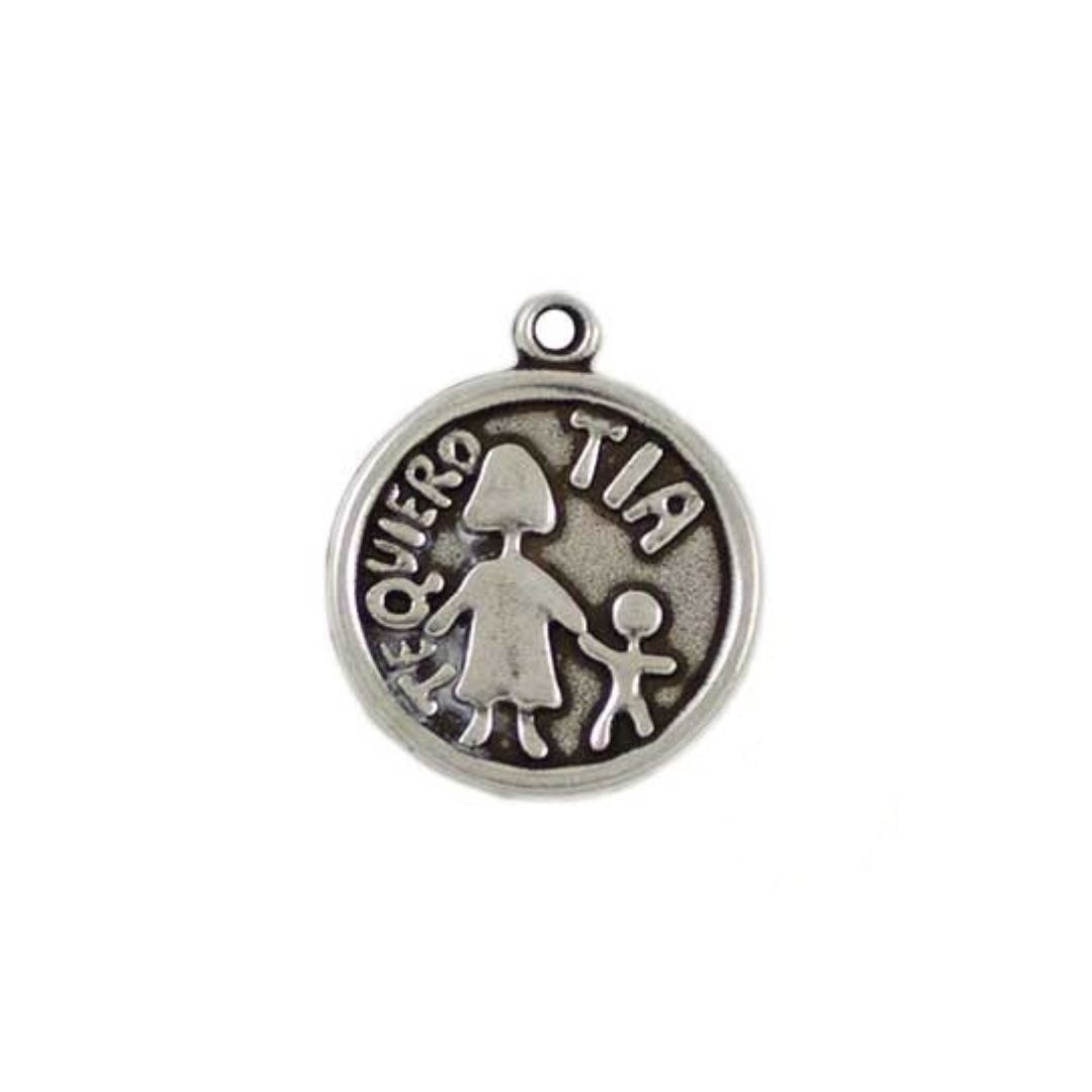 Colgante medalla te quiero tía de 24mm de Zamak bañado en plata.