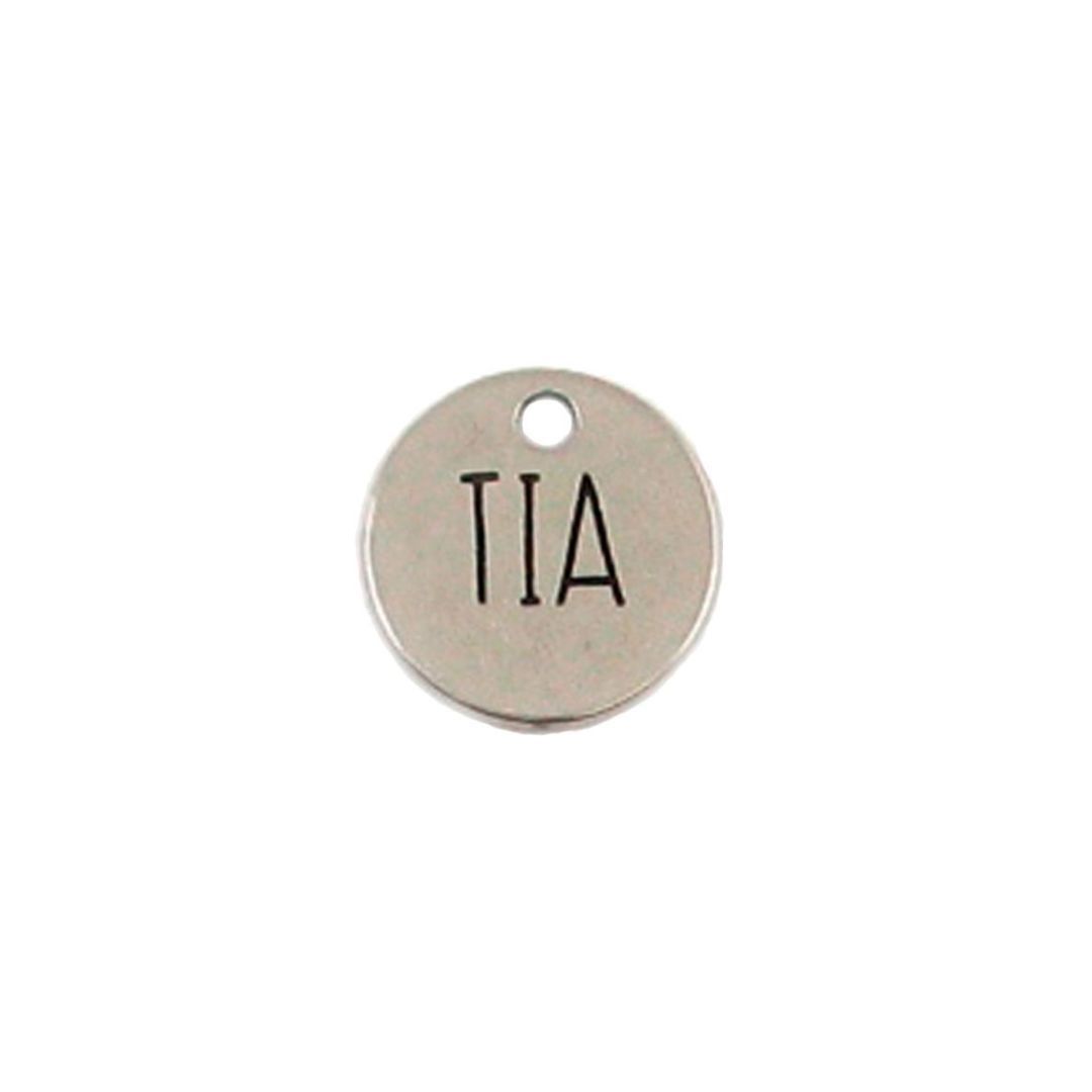 Colgante medalla con grabado tía de 20mm de Zamak bañado en plata.