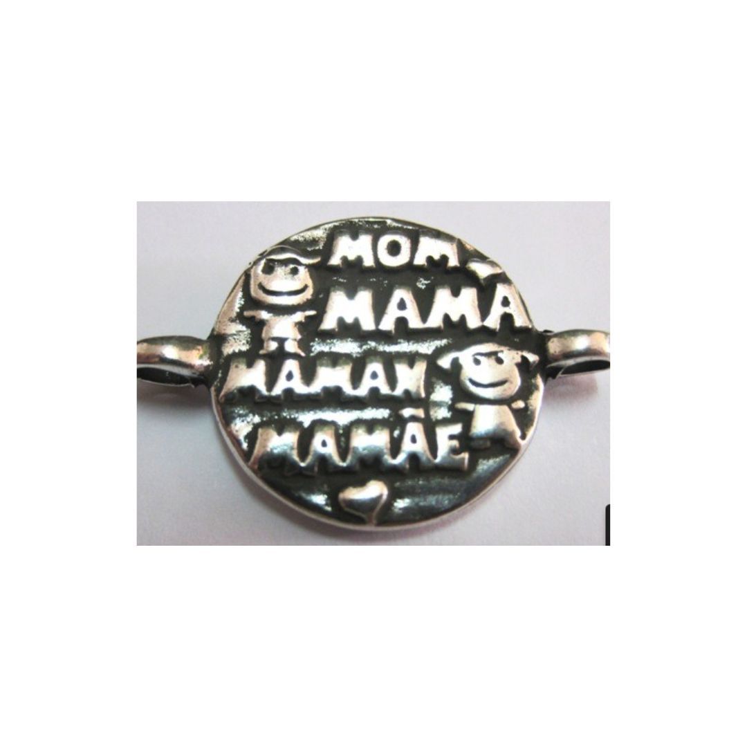 Conector medalla redonda de mamá de 35x25mm de Zamak bañado en plata.