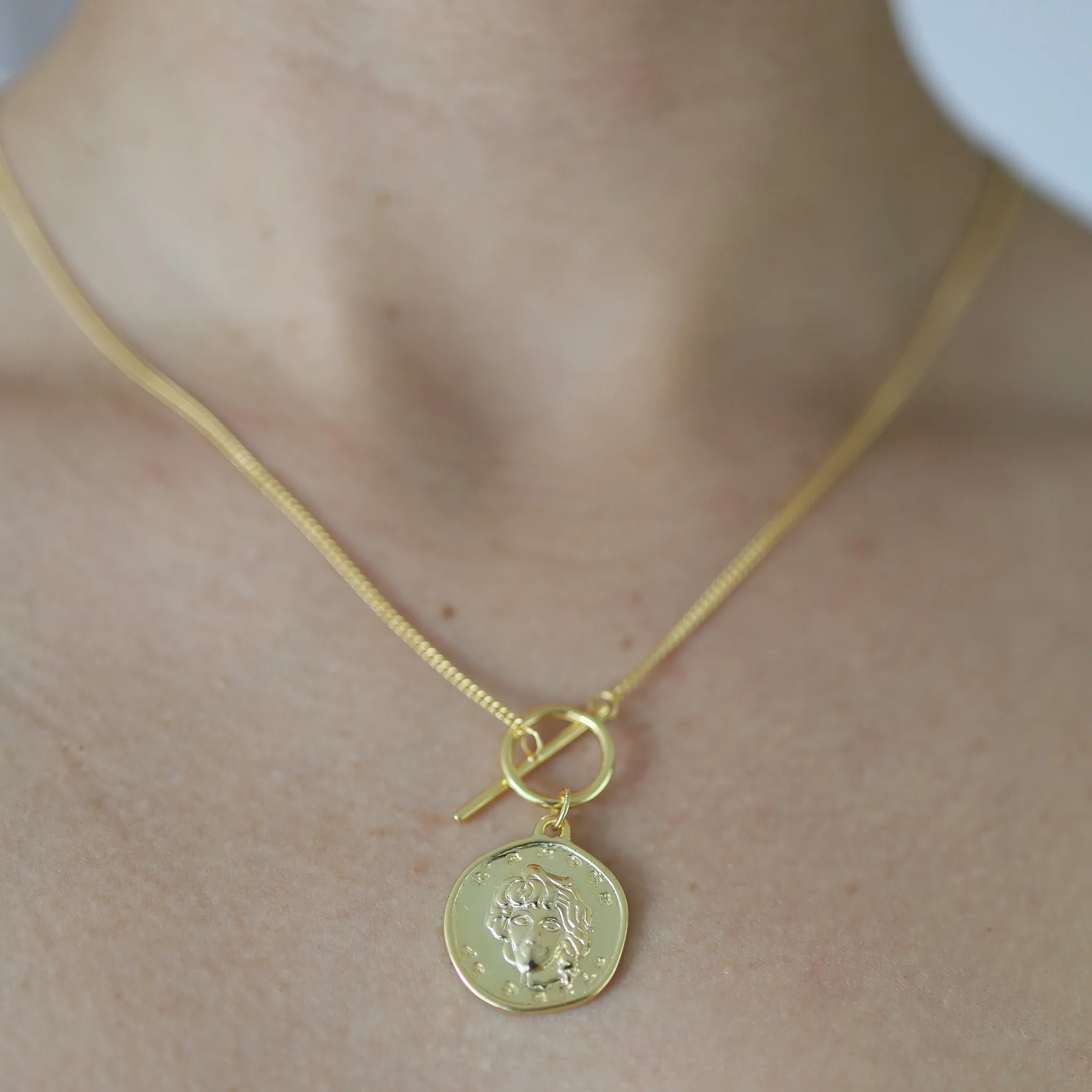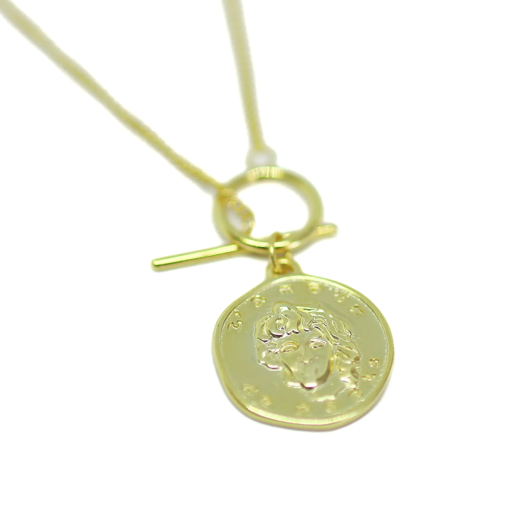 Presentamos nuestra exclusiva gargantilla, confeccionada en plata .925 con chapa de oro de 18k y un dije de estilo griego. Este diseño fusiona la sofisticación del oro con la elegancia atemporal de la antigua Grecia. Moderna y refinada, esta pieza es perfecta para destacar tu estilo con un toque de distinción.