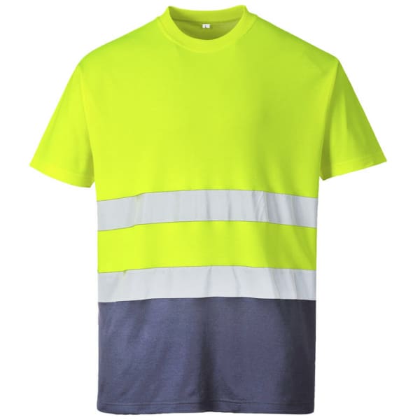 Camiseta de alta visibilidad combinada con cintas reflectantes.