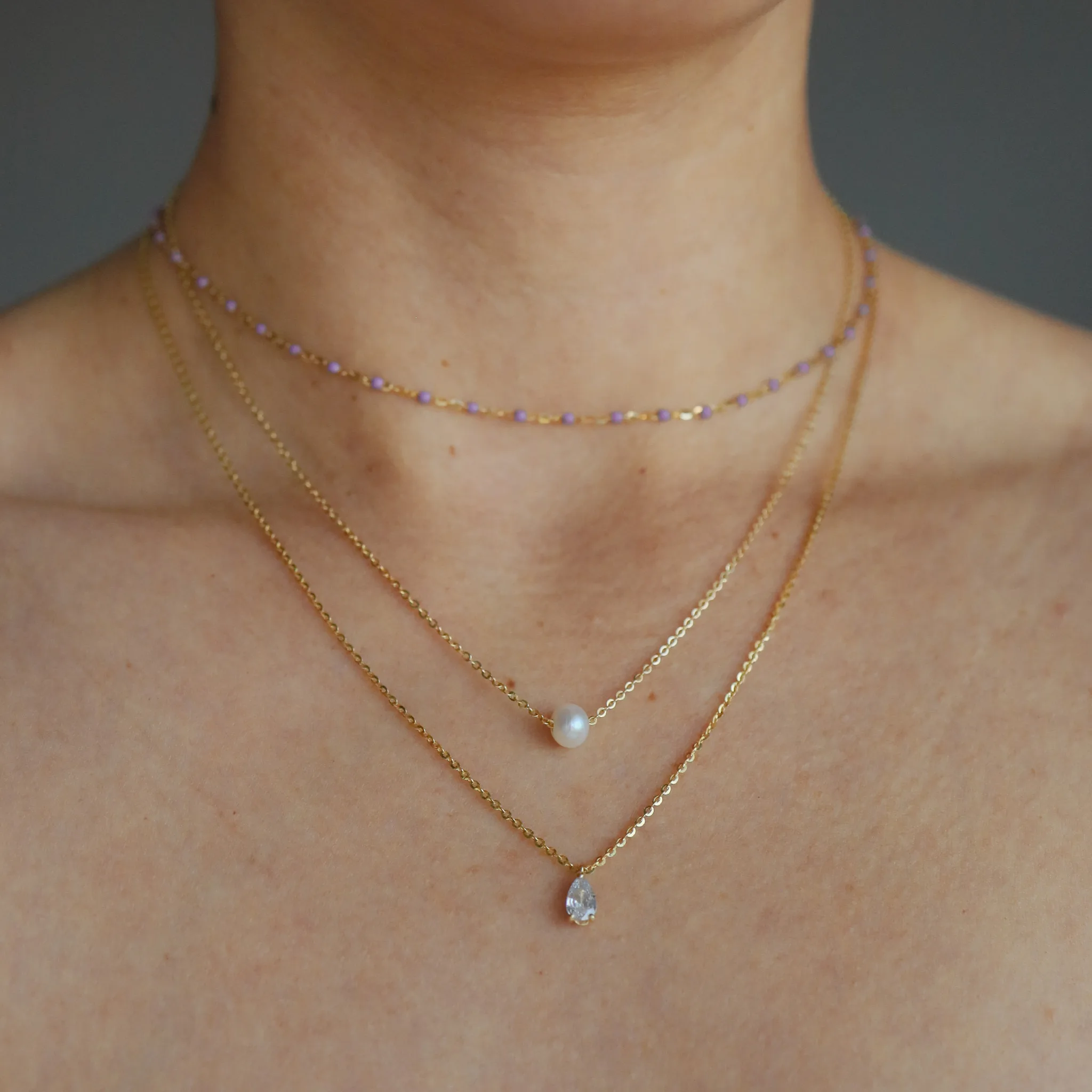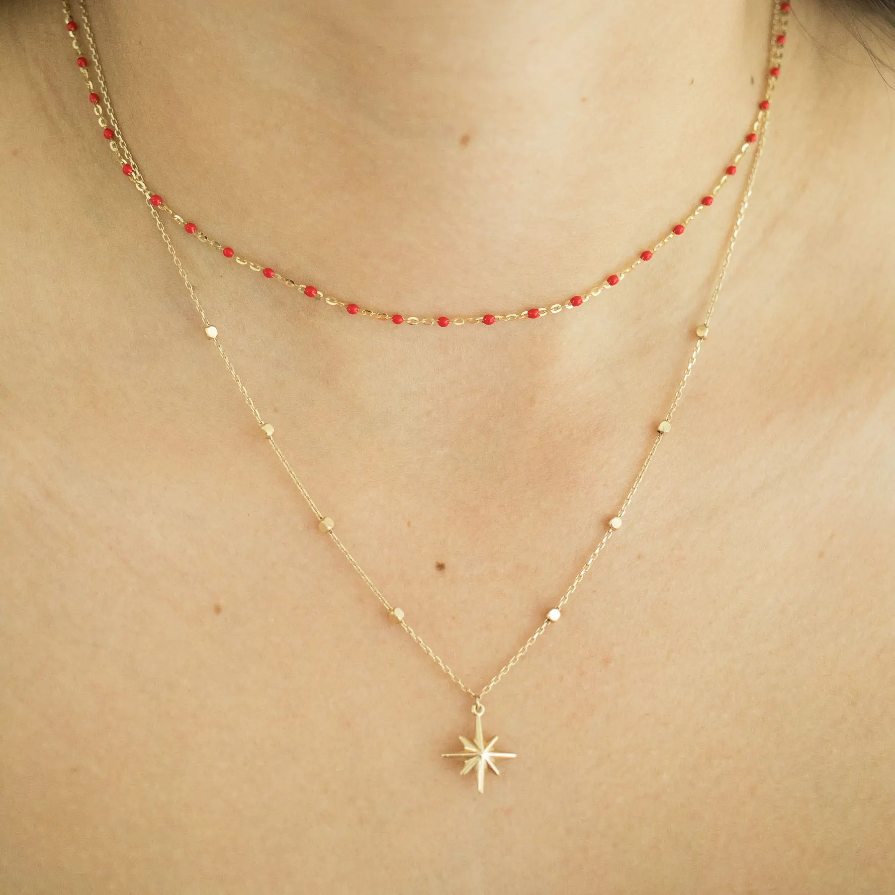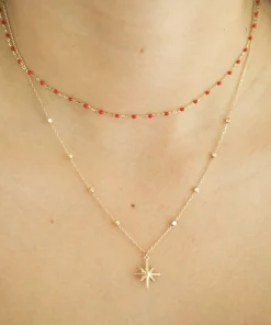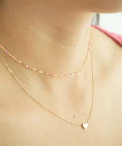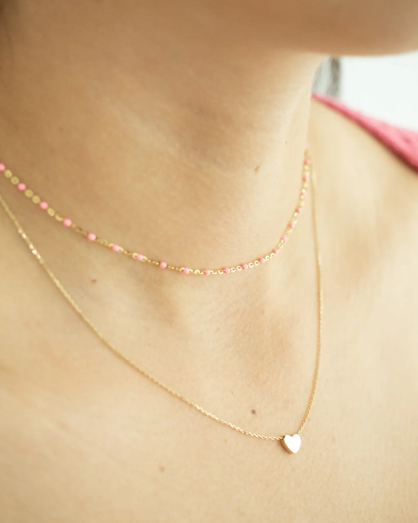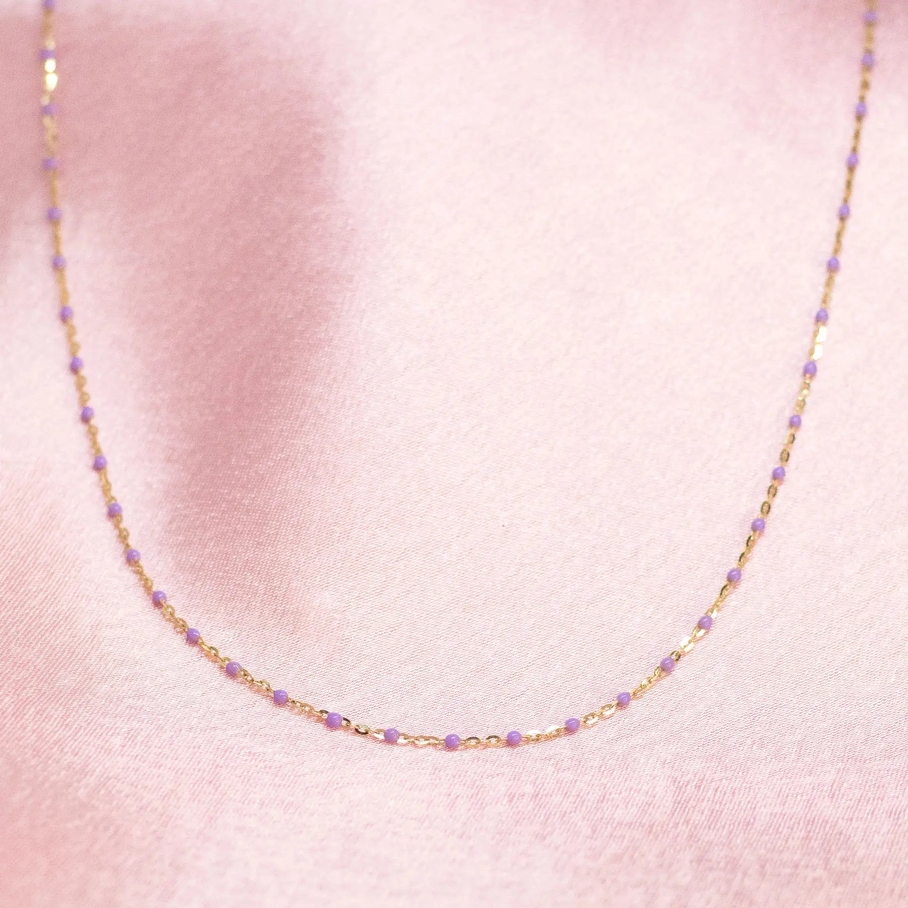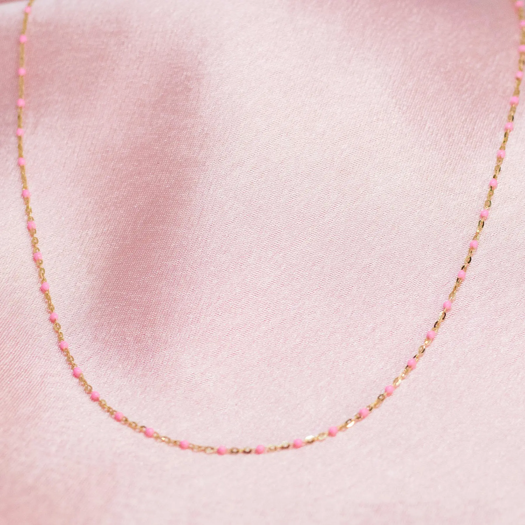Fabricada en oro 10k y adornada con bolitas esmaltadas, esta cadena añadirá un toque de color y estilo a cualquier conjunto. ¡Hazla tuya y deslumbra con esta pieza única y personalizada!