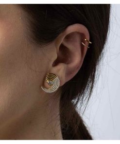 Gancho de pendiente aro de latón de 16×13,4mm. Latón bañado en plata y oro. Pin con baño de titanio.