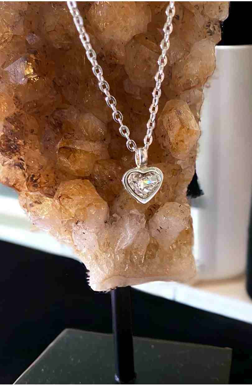 Gargantilla realizada en Plata 925 con colgante corazón cristal blanco.