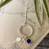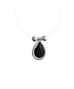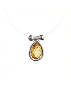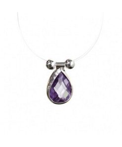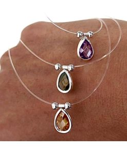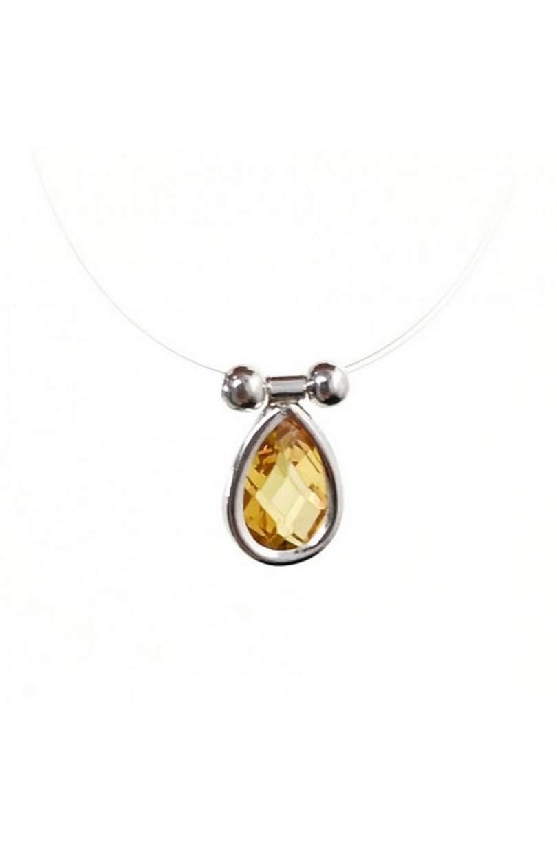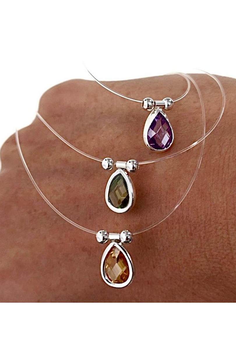 Gargantilla realizada con hilo sedal de 41 cm largo con motivo bolas y lágrima, circonitas color de 1.2 cm largo.