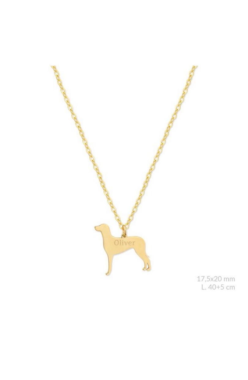 Gargantilla con la silueta de tu mascota y su nombre grabado realizado en Plata de ley 925 o Plata de ley 925 con baño de oro.