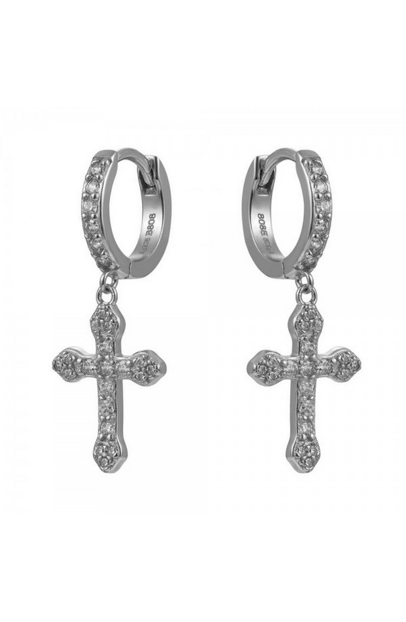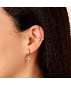 Pendiente Cruz en Plata 925 o Plata 925 bañada en oro con circonitas.