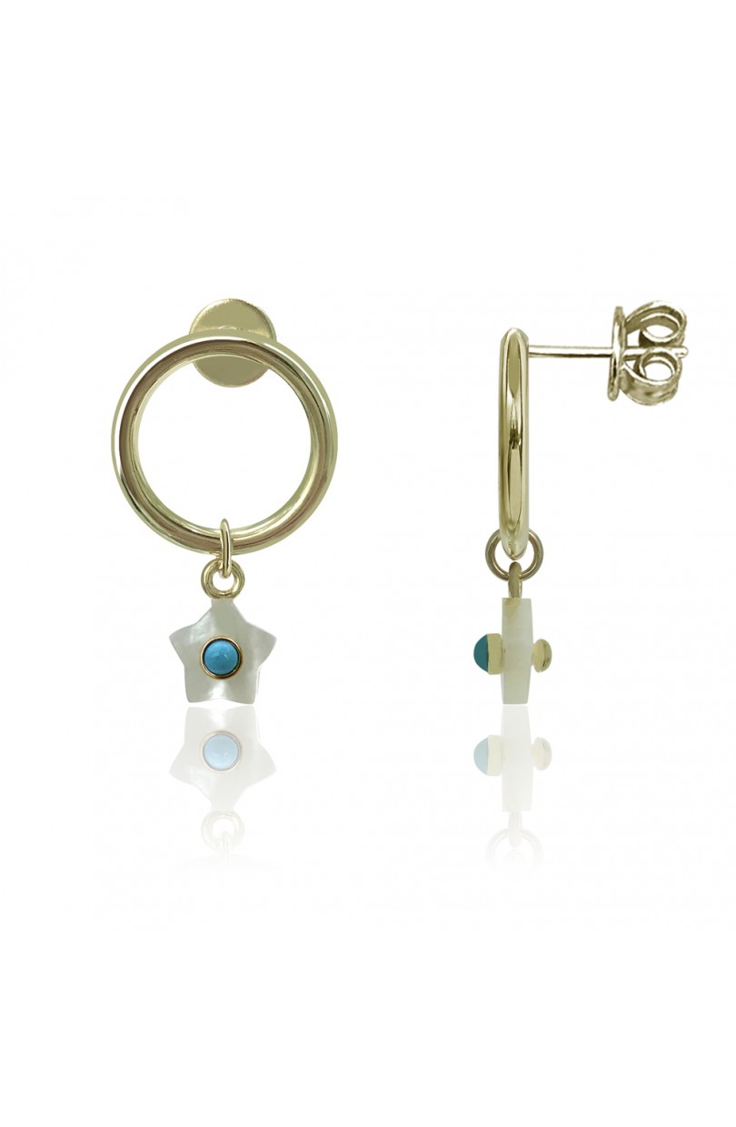 Pendiente con mineral y estrella plata de ley 925 o plata de ley bañada en oro.