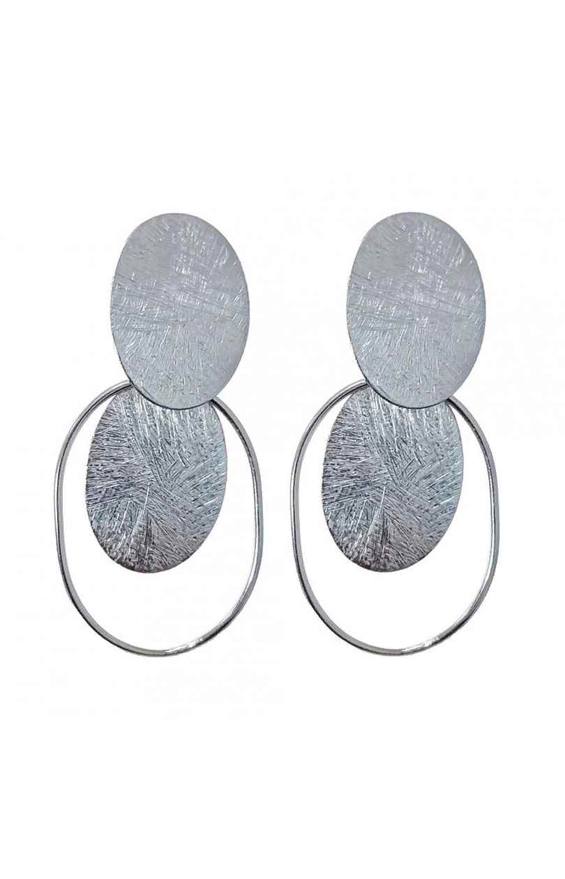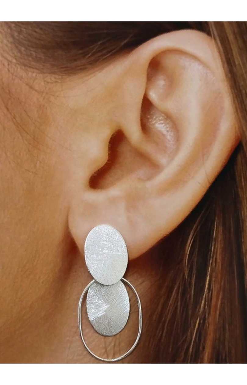 Pendientes realizados en Plata de Ley 925 de 3.7 cm largo, con motivo óvalos mate, cierre a presión.