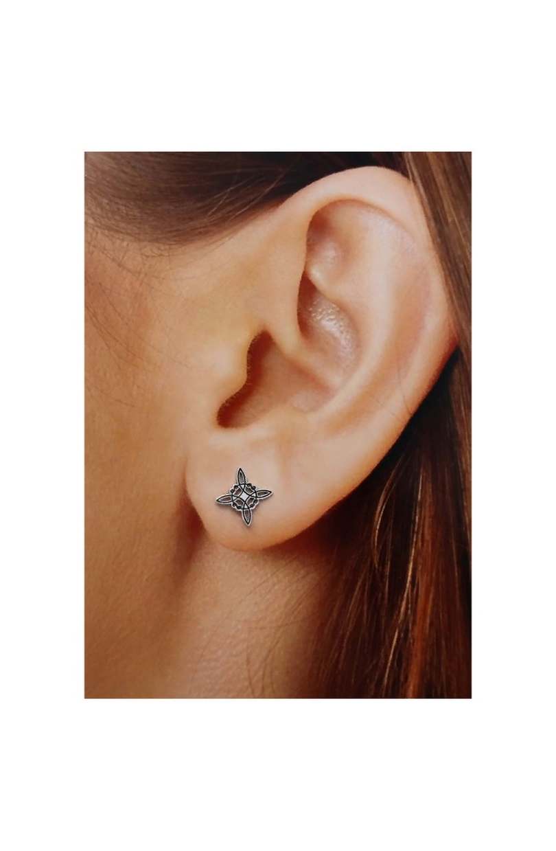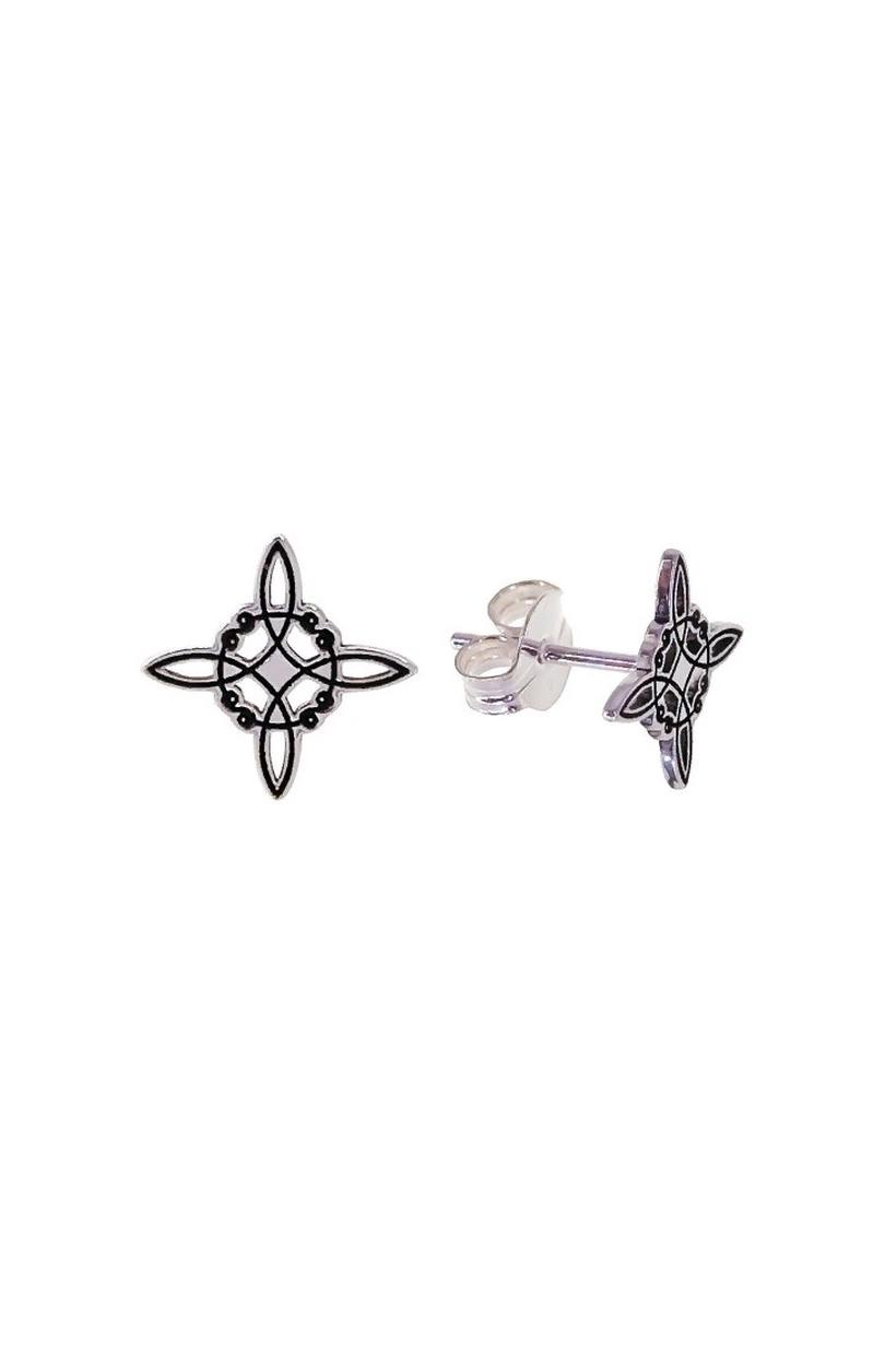 Pendientes realizados en Plata de Ley 925 motivo nudo de Bruja oxidados de 10mm cierre de presión.