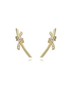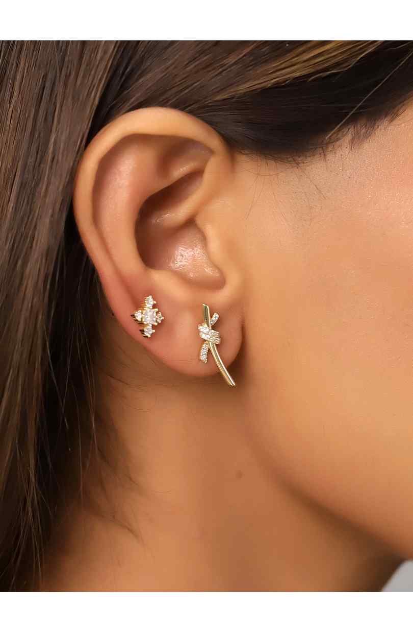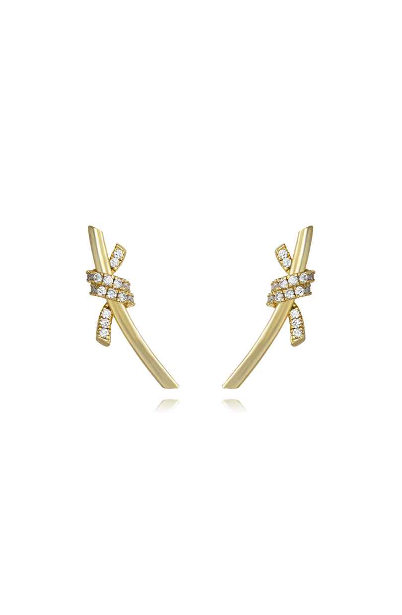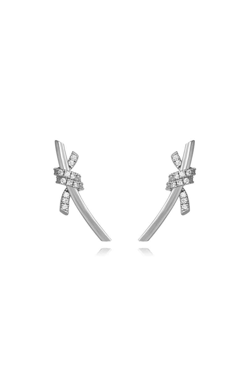 Un par de pendientes de palo con circonitas de plata de ley 925 disponibles en acabado bañado en oro y plata rodiada.