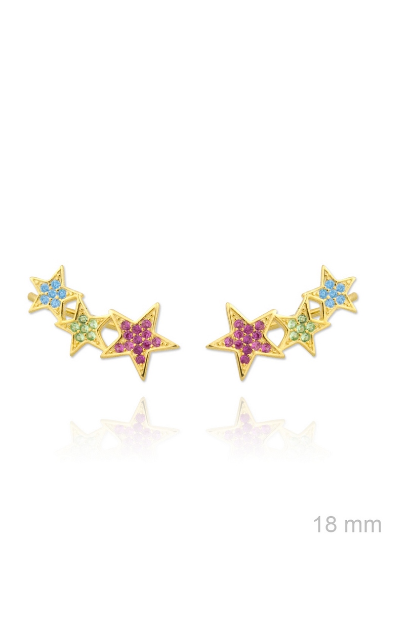 Pendientes Trepador Star Colors Plata 925 dorado con circonitas de colores