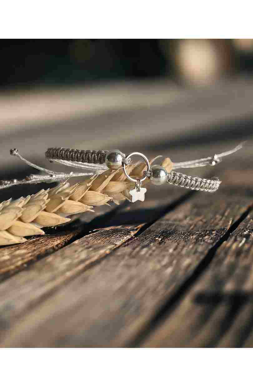 Pulsera circulo y estrella realizada en Plata 925 y hilo.