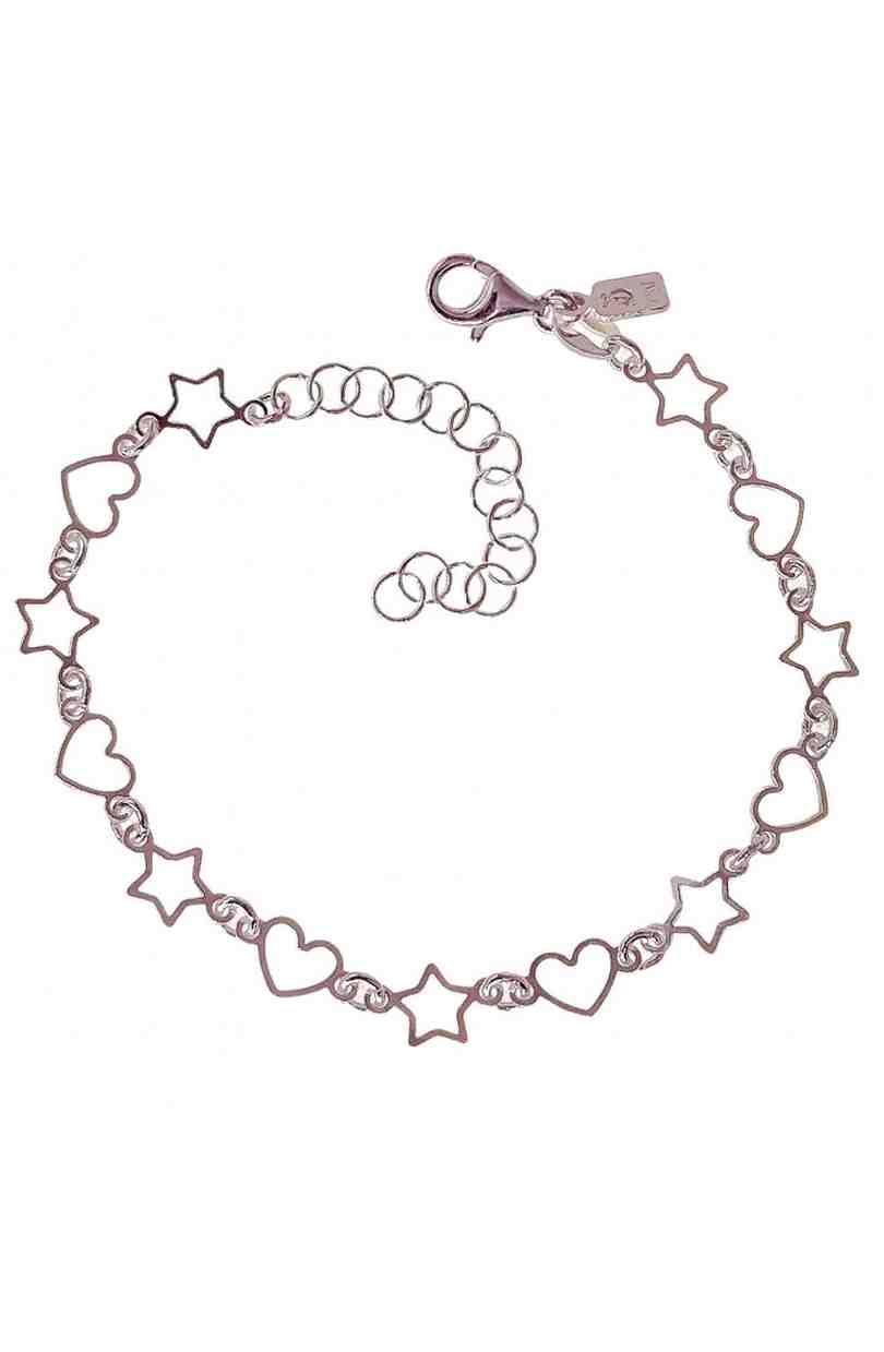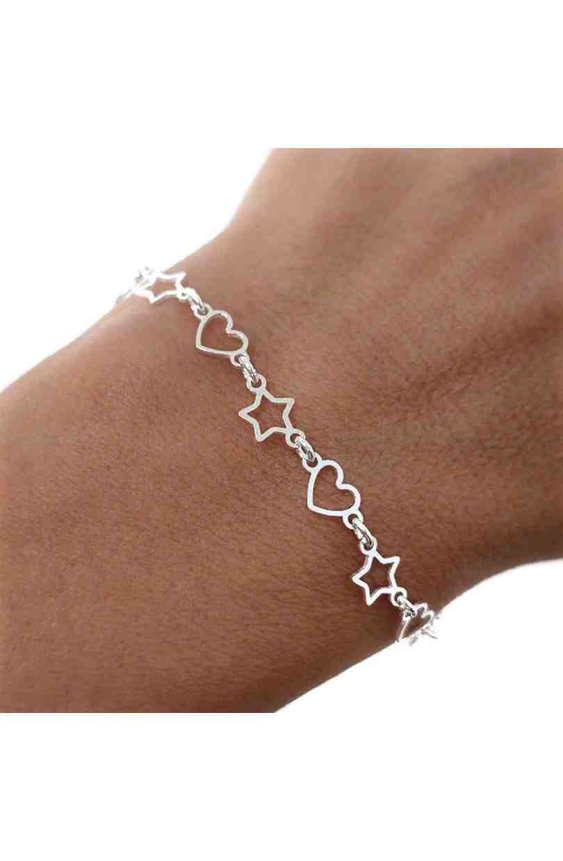 Pulsera realizada en Plata de ley 925 corazones y estrellas de 6mm calados continuados.