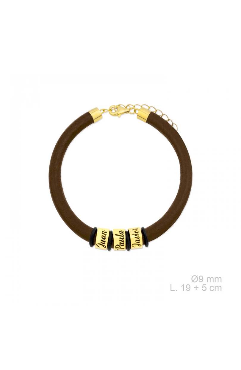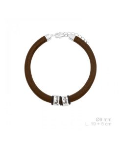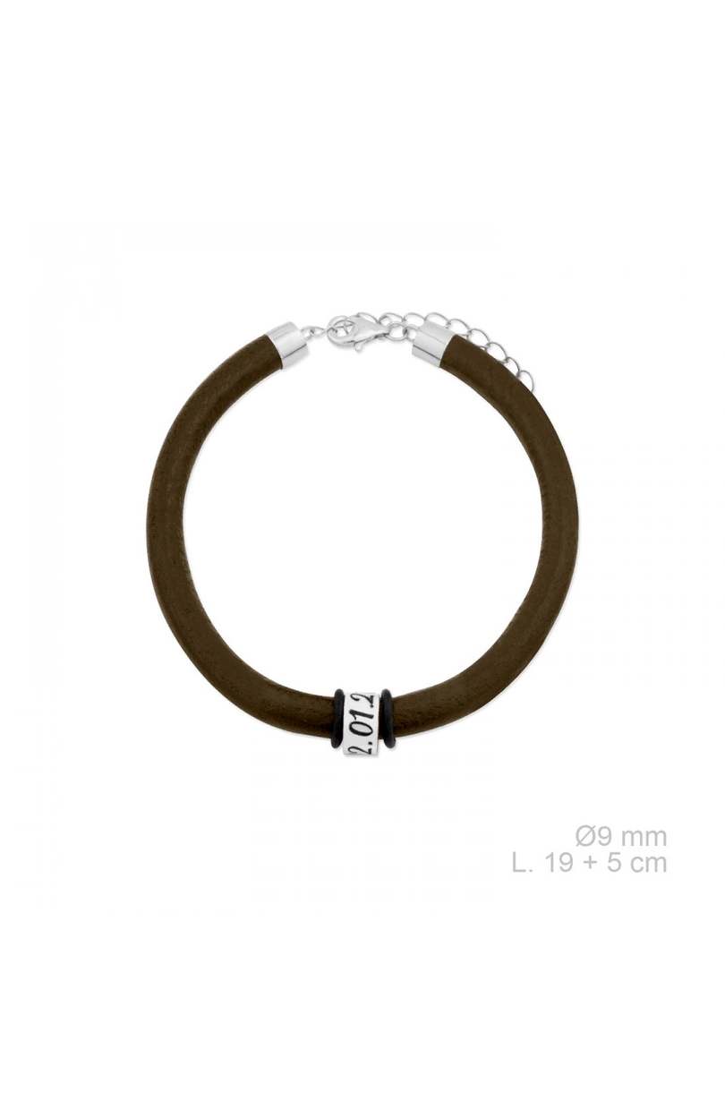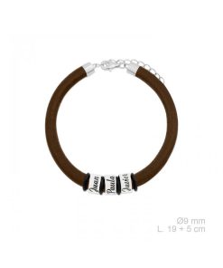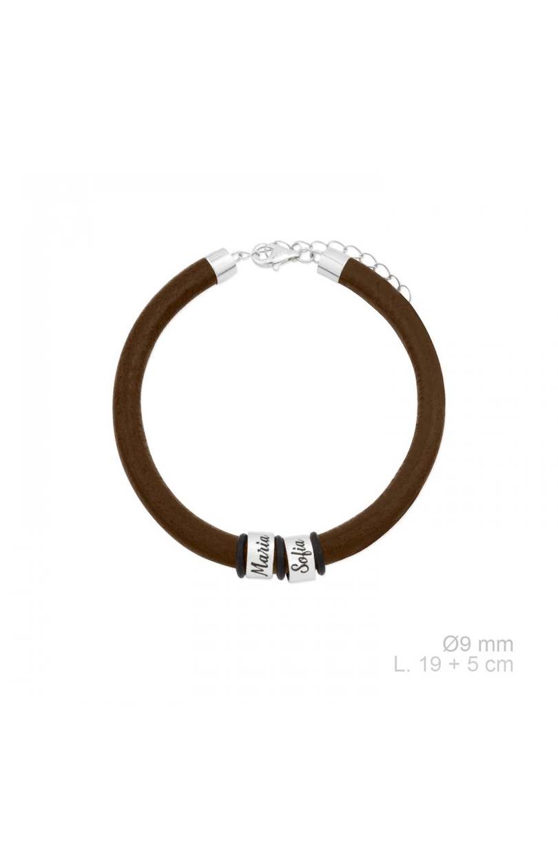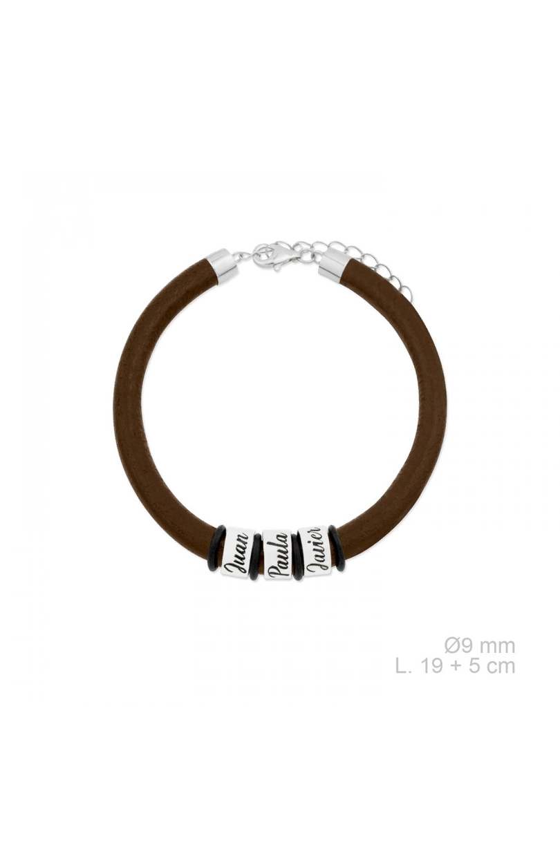 Pulsera cuero natural marrón con aros personalizados en Plata 925.