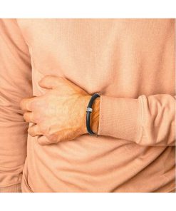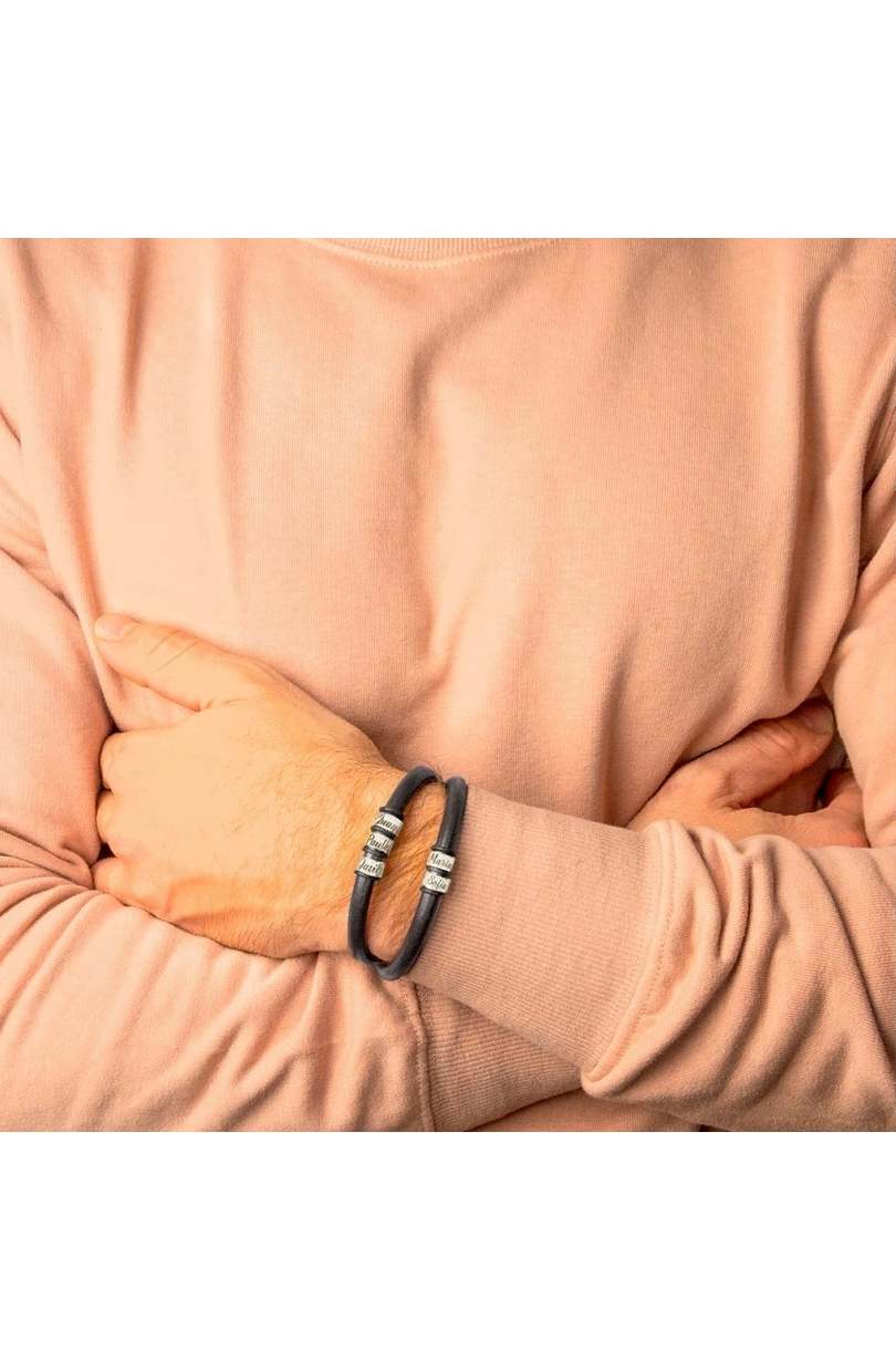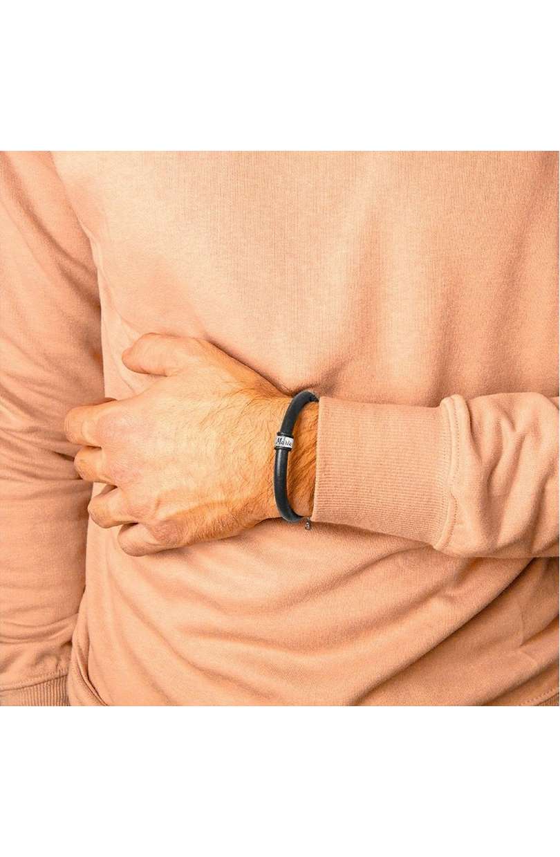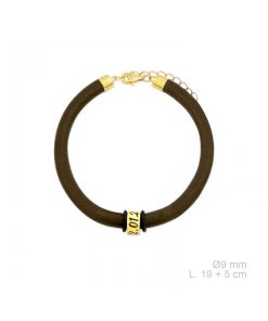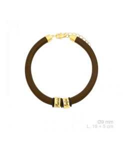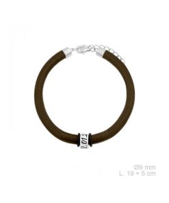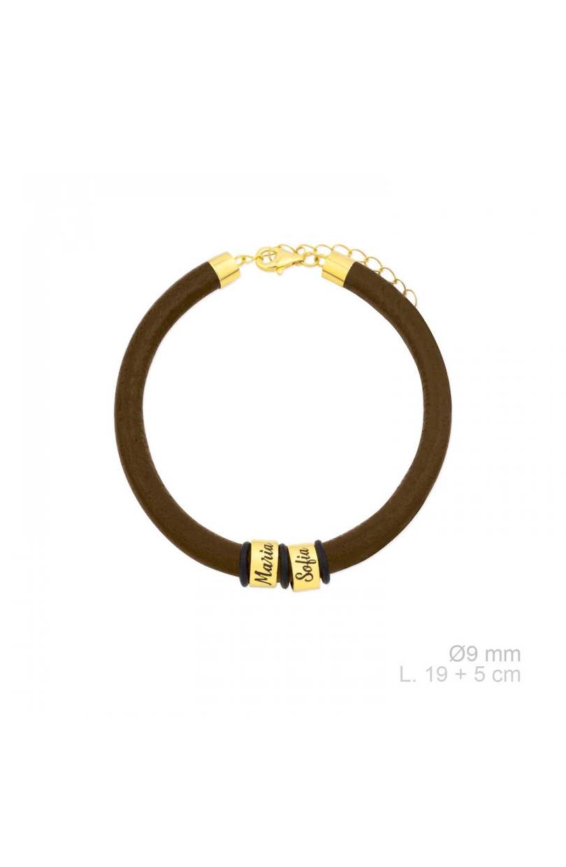Pulsera cuero natural marrón con aros personalizados en Plata 925.