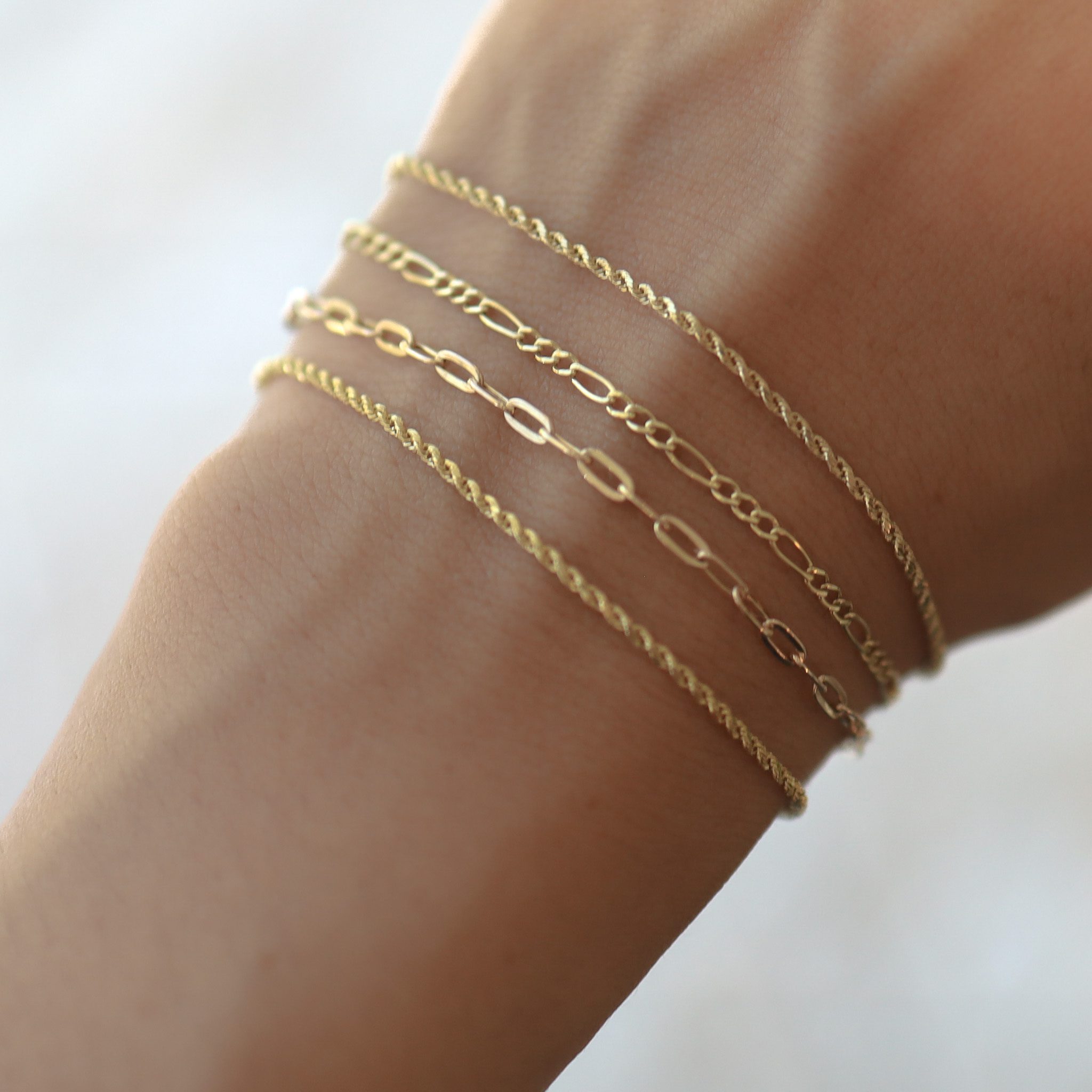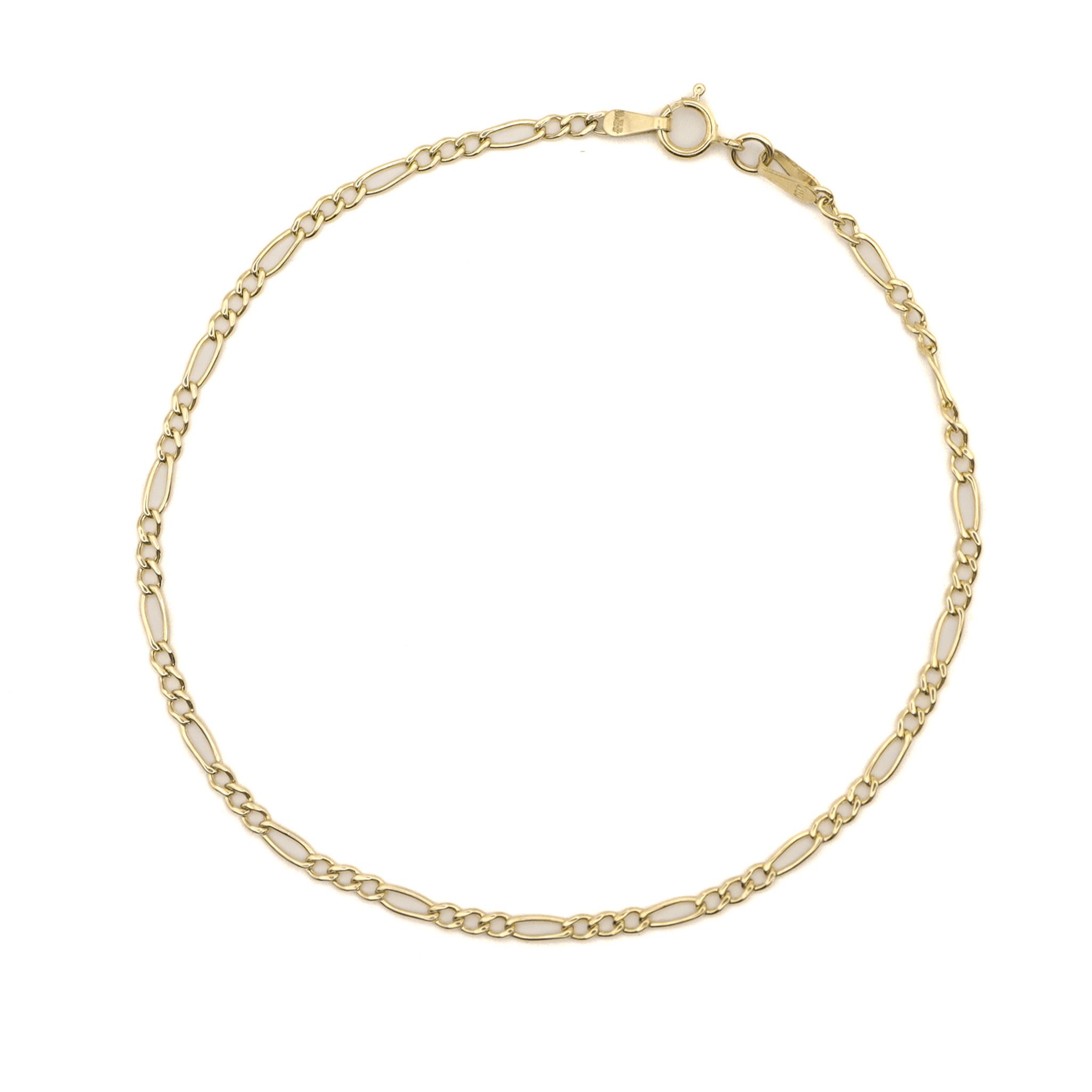 Un clásico que nunca pasa de moda. Esta pulsera Figaro de oro 10k combina eslabones largos y cortos para un diseño sofisticado pero versátil. Ligera, cómoda y perfecta para el día a día o para elevar cualquier look. Llévala sola o en stack con otras pulseras, ¡se ve increíble de cualquier forma!