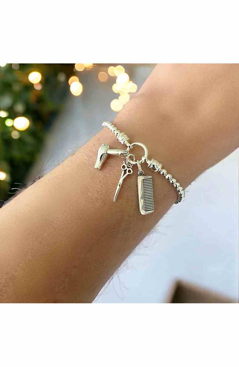 Pulsera My Life artesanal realizada en Plata 925 con colgantes motivos peluquera.