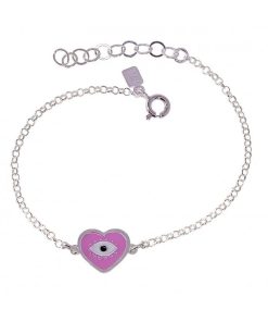Pulsera de 16 cm largo con cadena adaptable de 3 cm y motivo corazón de 12mm esmaltado colores a elegir rojo, azul, o rosa.