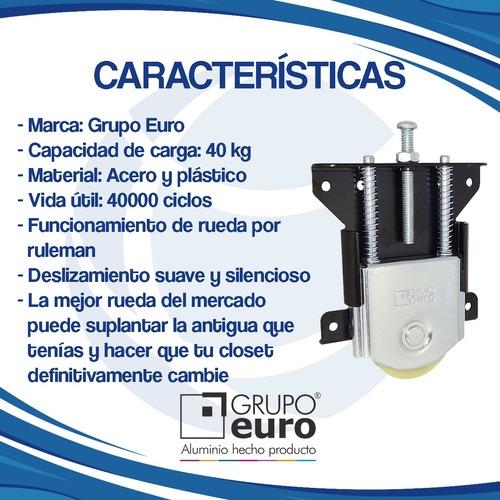 – La mejor rueda del mercado, soportando 40kg REALES, puede suplantar la antigua que tenías y hacer que tu closet definitivamente cambie o podes empezar a construirlo vos mismo.